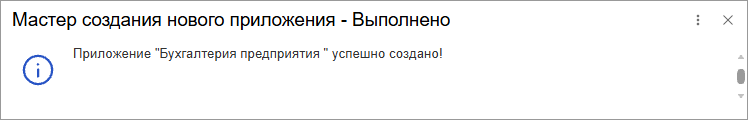 Назначив права доступа пользователей, необходимо нажать кнопку Далее. Мастер создания нового приложения выведет сообщение Приложение ... успешно создано!