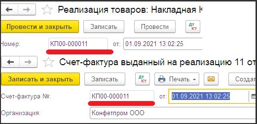 В приложении «1С:Бухгалтерия» счета, документы реализации (акты выполненных работ, расходные накладные) и счета-фактуры нумеруются автоматически, но отдельно для каждого типа документа. Из-за этого в одном комплекте документов по реализации товаров и услуг номера могут не совпадать.