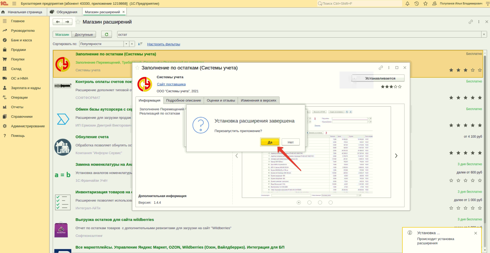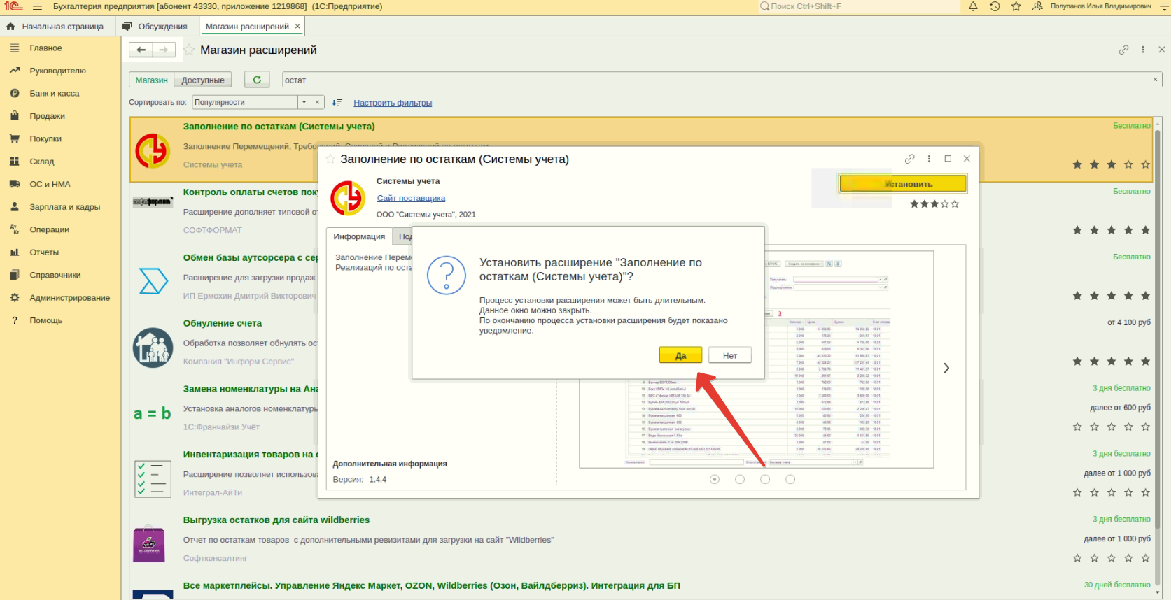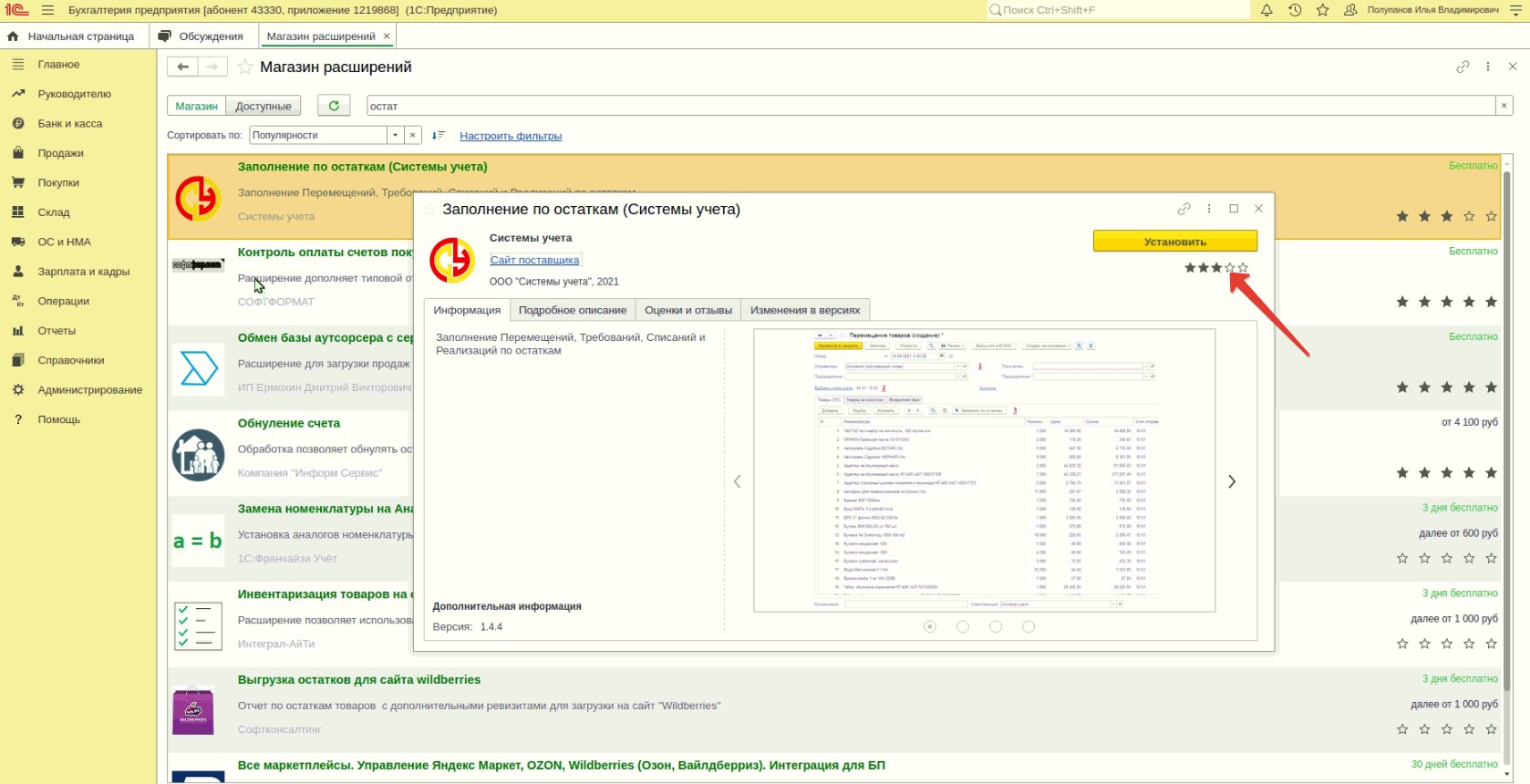 Расширение «Заполнение по остаткам» можно установить в облачную программу 1С:Бухгалтерия из 1С:Магазин расширений бесплатно по прямой ссылке (перейдите по этой ссылке и нажмите «Установить» в интересующей программе) или по инструкции ниже.