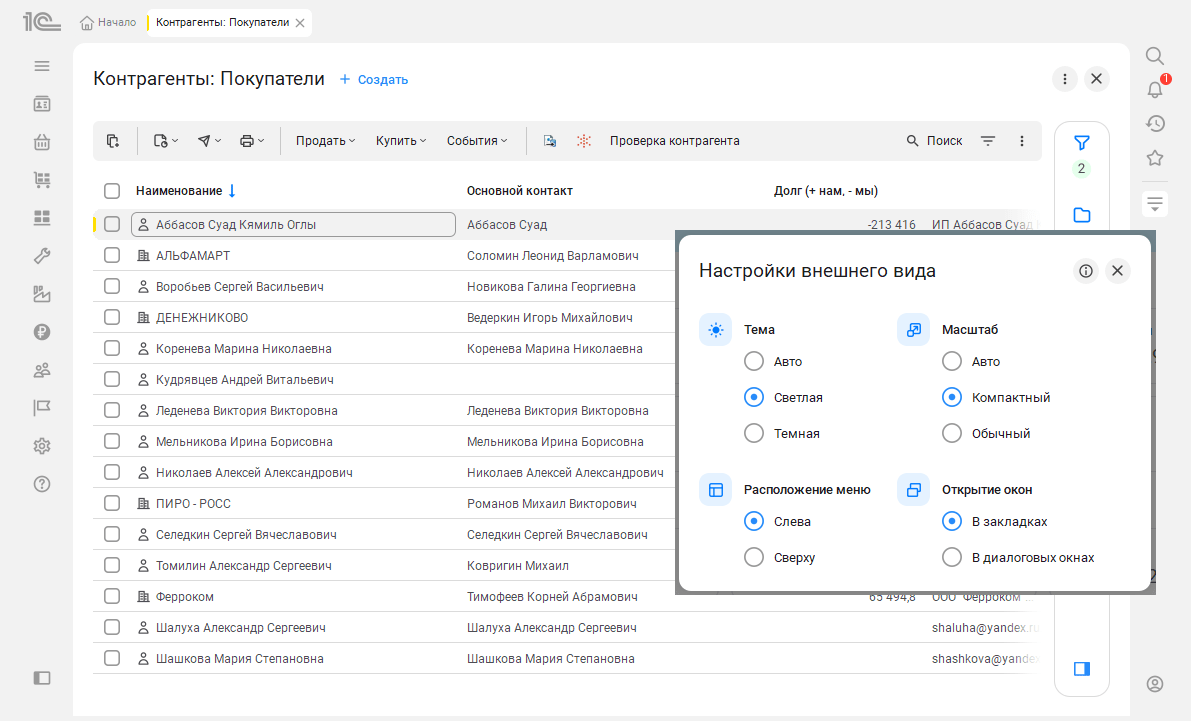 Интерфейс 8.5 легко адаптируется под любой экран. В «компактном» режиме уменьшается шрифт форм и командного интерфейса.