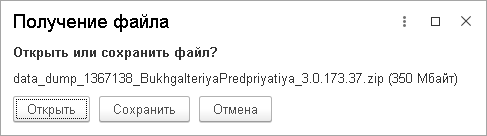 Файл резервной копии может сразу же быть скачан. Или может быть выведено окно со сведениями о размере файла и запросом действия: