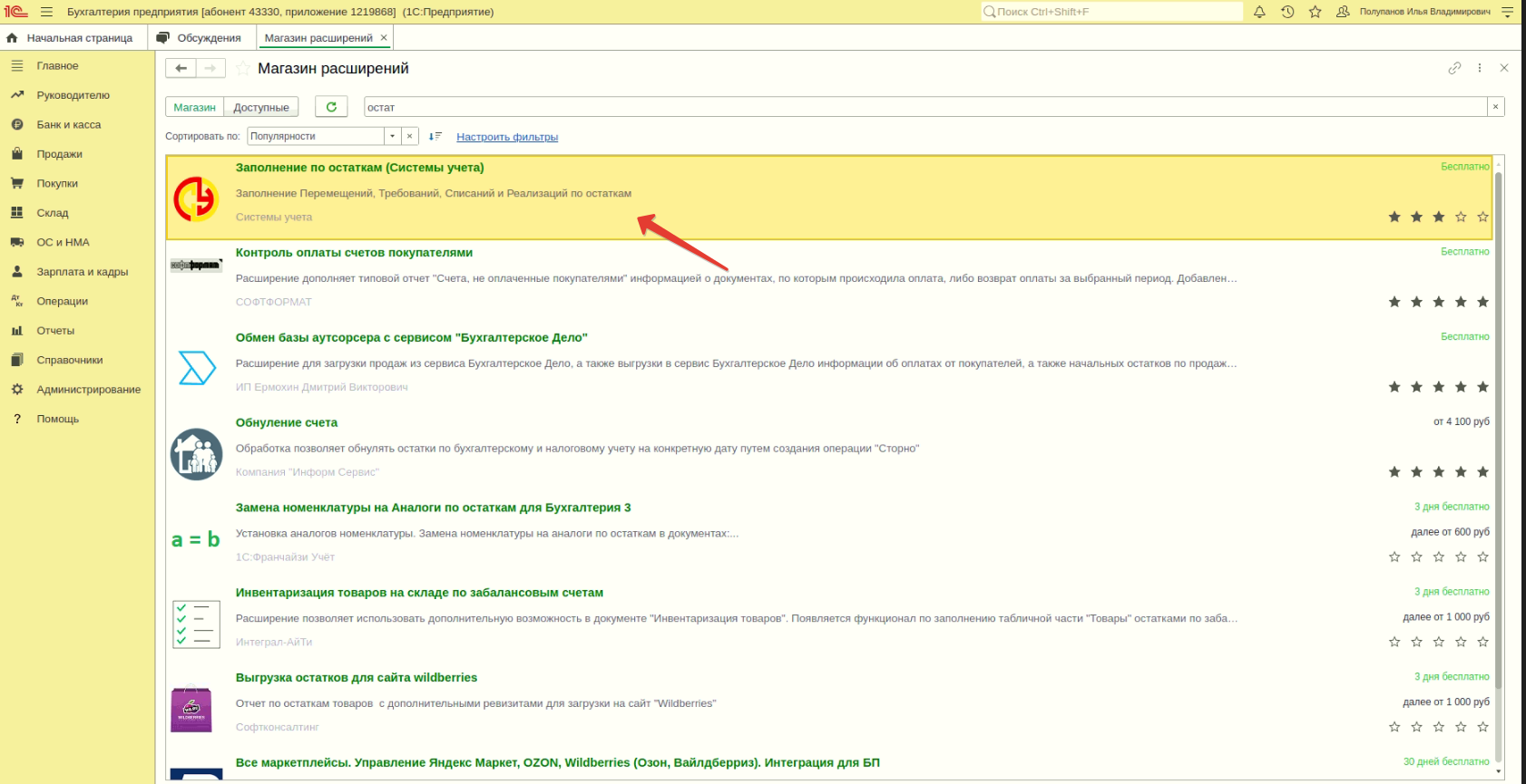 Расширение «Заполнение по остаткам» можно установить в облачную программу 1С:Бухгалтерия из 1С:Магазин расширений бесплатно по прямой ссылке (перейдите по этой ссылке и нажмите «Установить» в интересующей программе) или по инструкции ниже.