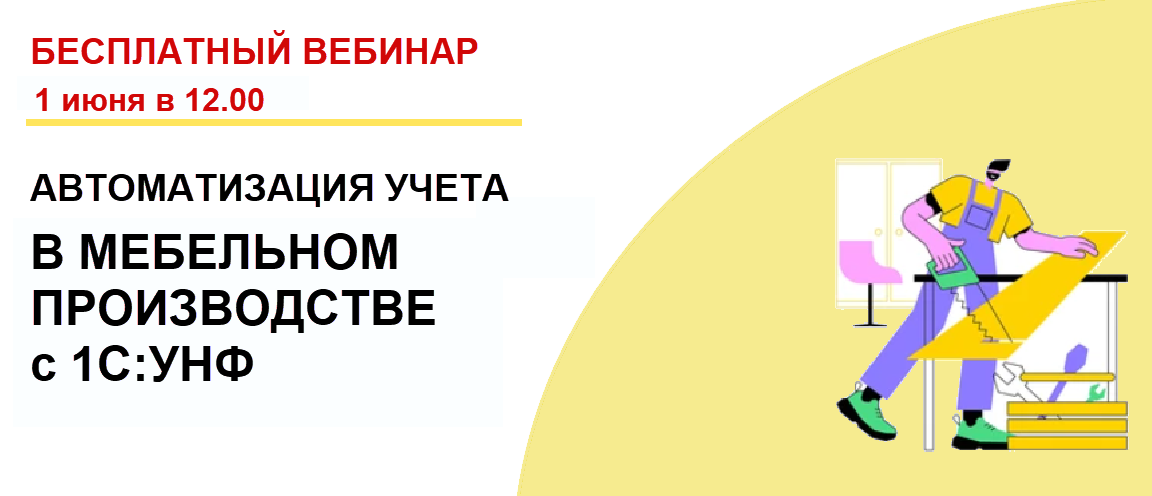 01 июня 2023 г. (12:00 мск) фирма 1С совместно с партнером Идея проводит бесплатный вебинар Автоматизация учета в компаниях по производству мебели с 1С:УНФ.