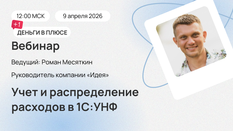 09 апреля 2026 г. (12:00 мск) фирма 1С совместно с партнером компанией Идея проводит бесплатный вебинар Учет и распределение расходов в 1С:УНФ.